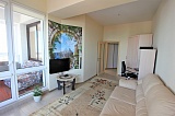 Квартира расположена в жилом комплексе бизнес класса в самом центре туристической столицы, по ул. Альпийская. Дом клубного типа представляет собой не только высококачественную жилую застройку, но и настоящий арт –объект с яркой внешней архитектурой. Закрытая и охраняемая территория, а также удобные подъездные пути с нескольких центральных дорог – еще одно преимущество данного предложения. Помещение распланировано на отдельную светлую спальню, просторную гостиную, кухню, остекленную лоджию с зоной отдыха и раздельный санузел. Во всех комнатах квартиры установлено витражное остекление с шикарным обзором на морской горизонт курорта, кроме того, что также дополняет пространству света и простора. Квартира полностью меблирована и оснащена бытовым оборудованием, в ней выполнен качественный, современный ремонт в светлых тонах и максимальной эргономичностью в планировке интерьера.