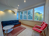 Качественный ремонт с использованием дорогих материалов придает квартире неповторимый шарм. Мебель из Италии и техника из Германии — это ваше воплощение стиля и удобства. Благодаря высоким потолкам и большим окнам, в квартире всегда светло и уютно. Открывайте окна и наслаждайтесь видом на море и зелень.