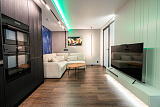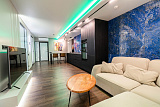 Интерьер выполнен в современном стиле с использованием премиальных материалов, мебели и техники итальянского и немецкого производства. Каждый элемент продуман для того, чтобы создать атмосферу уюта, эстетики и практичности.
