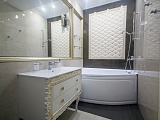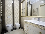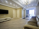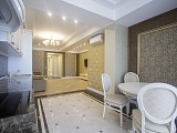 Дорогая дизайнерская отделка очень ненавязчиво и элегантно подчеркивает статус жилья. В интерьере преобладает популярная сегодня неоклассика, которая находится на вершине модных трендов в области дизайна. Прекрасным дополнением общей картины служа мебель и декор, которые были подобраны в полном соответствии с общей тематикой оформления пространства. Также квартира полностью укомплектована абсолютно новый бытовой техникой от ведущих мировых брендов.