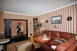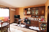 На кухне установлен деревянный гарнитур с мойкой, плитой и вытяжкой, большой обеденный стол, выполненный из массива дуба. В гостиной – большой угловой диван из кожи. В спальных комнатах – кровати, гардеробные шкафы. Из крупногабаритной техники в квартире есть телевизор, стиральная машинка, холодильник, а также современное климатическое оборудование.