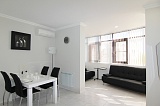 Площадь представленной квартиры – 64 кв.м. Внутреннее пространство тут распланировано на уютную кухню, объединенную с гостиной и столовой зонами, а также на очень уютную спальню. Санузел совмещенный. Выделена зона прихожей. Очень стильная отделка. В основе интерьера здесь лежит черно-белая классика, которая элегантно разбавлена мотивами хай-тека и минимализма. Самая главная роль отведена белому цвету, который в этой квартире представлен большим количеством оттенков – от молочного до жемчужного. Мебель и элементы декора, напротив, выдержаны в темной палитре красок.