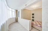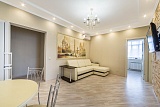 Около пятидесяти процентов клиентов, обращающихся в наше агентство с просьбой подобрать квартиру в Сочи, желают приобрести квартиру для отдыха. Вторая половина клиентов рассматривает покупку для постоянного проживания. Данная квартира подходит для обеих целей: и для отдыха, и для проживания небольшой семье. Две отдельные изолированные спальни (одна с лоджией, вторая - с открытым балконом) и большая кухня-гостиная, в которой так уютно будет проводить вечера с друзьями. Новый классический ремонт и мебель.