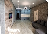 В квартире, специально для продажи, был сделан новый ремонт. Установлена вся мебель, техника, климатическое оборудование. Состояние отделки просто идеально. Можете смело планировать свой переезд буквально в день покупки. Очень современный и красивый интерьер, продуманное освещение и подсветка. Санузел отделан итальянской керамической плиткой, сантехника производства Германии.