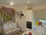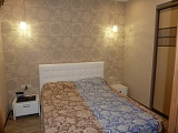 В квартире выделено две комнаты – спальня и гостиная, которая также может выполнять роль еще одной спальной. Просторная кухня. С/у совмещенный. Пролистав фотографии этой квартиры, Вы наверняка отметили для себя акт качественного ремонта. В живую он выглядит еще лучше. В квартире царит какая-то непередаваемая атмосфера тепла, уюта и легкости. Преобладающая в оформлении светлая палитра красок визуально расширяет границы пространства.