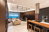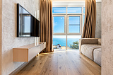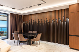 Строгий авторский надзор позволил избежать технических неувязок. Все линии коммуникаций и инженерных систем скрыты от глаз и пребывают в идеальном состоянии. Логичным продолжением стилистики внутреннего убранства является невероятно красивый вид на море, который открывается из больших панорамных окон!