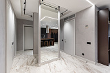 Общая площадь этой квартиры составляет 165 квадратных метров. Внутреннее пространство тут распланировано следующим образом: