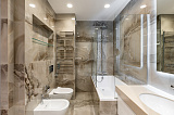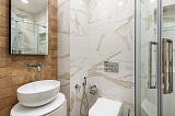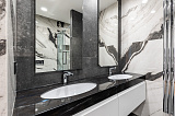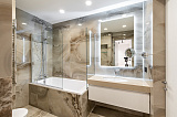 Над созданием проекта трудились ведущие дизайнеры, которые на самом деле продумали каждую деталь. В отделке использованы дорогостоящие материалы, которые только подчеркивают статус предложения. Мебель, техника, текстиль и декор – все это подбиралось в соответствии с общем стилем интерьера.