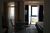 Квартира, общая площадь которой составляет 26 квадратных метров, отличается очень удобным и продуманным зонированием пространства. Здесь выделена зона кухни, спальни и гостевое пространство. Самое главное преимущество – это, конечно же, собственный балкон, с которого открывается безумно красивый вид на морскую акваторию!