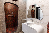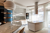 Внутри уже все готово для жизни и отдыха. Высокое качество отделки и детально продуманная стилистическая концепция точно покорит даже самых искушенных эстетов. Мебель и техника, декор и текстиль – здесь все подобрано в детальном соответствии с общей стилистикой интерьера. Стоит побывать тут лично, чтобы насладиться эстетикой в самом полном объеме!