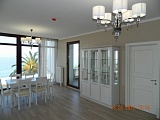Ее общая площадь – 292 квадратных метра. Внутри выделено три изолированных спальных комнаты, большая кухня, совмещенная с гостиной, 4 санузла, а также большая терраса и балкон с потрясающим панорамным видом на море.