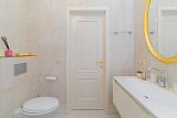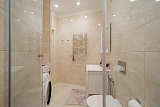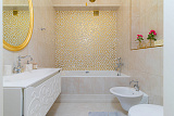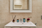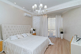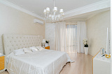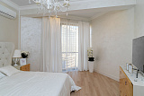 Ванная комната отделана итальянской плиткой и мозаикой. Одна из спален имеет выход на террасу. Изюминка квартиры - высокие потолки - 3.2 метра. Освещение в квартира это Роскошные Эксклюзивные люстры (Производство Италия).
