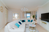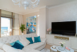 Элитная квартира с дорогой отделкой " под ключ" полностью готова к проживанию. В квартире имеется просторная солнечная терраса с эксклюзивной Испанской мебелью. Просторная гостиная с великолепным видом на море и восход солнца плавно переходит в светлую кухню с большим обеденным столом.