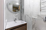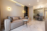 Квартира идеально подходит для жизни и отдыха: 45 квадратных метров, выделенная спальня с продуманными зонами хранения; просторная гостиная. совмещенная с кухонной и обеденной зоной; два открытых балкона с потрясающем видом на море - все это есть в квартире. Ремонт осуществлялся в строгом соответствии с дизайн-проектом, в котором было предусмотрено все до самых небольших деталей.