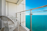 Интерьер выполнен по индивидуальному дизайн-проекту: авторский ремонт отличается безупречным стилем, качественными материалами и вниманием к деталям. Светлая цветовая палитра интерьера гармонирует с морскими пейзажами за окном, создавая атмосферу уюта и лёгкости. Каждая деталь – от мебели до бытовой техники – подобрана с особой тщательностью, что делает эту квартиру действительно уникальной.