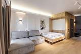 Студия очень стильная и продуманная, скрытая спальная, гардероб, гостиная зона, кухонная-обеденная зона, прихожая, совмещенный санузел. Отличное решение для отдыха, так же хорошо подойдёт под сдачу. Звоните, за более подробной информацией об объекте!