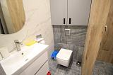 Просмотрев фотографии, вы также можете отметить для себя факт стильного и современного ремонта, который выполнен с использованием дорогих и качественных материалов. Полная меблировка и наличие необходимой бытовой техники позволяют собственникам переехать сразу после покупки. Дополнительных вложений в обустройство пространства точно не потребуется.