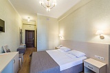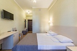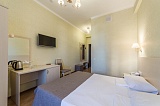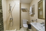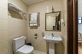 Интерьер – современная классика, которая покоряет своей лаконичностью и неброским шиком. Светлая палитра красок визуально делает пространство еще более свободным и уютным. Из мебели – двуспальная кровать с хорошим ортопедическим матрасом, гардеробный шкаф, письменный стол, тумбы. В санузле – душевая кабинка. Установлен кондиционер.