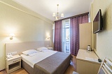 Квартира находится в центральной части Адлера, рядом с ТРЦ «Мандарин» и центральной набережной. Она входит в состав апарт-отеля, который предлагает своим жителям высококлассный внутренний сервис.