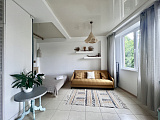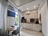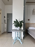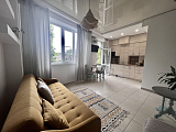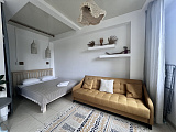 В продаже просторная, имеющая высокие потолки квартира- студия, 30 кв.м., грамотно укомплектованная всем необходимым, по типу «заходи и живи». В квартире два окна, газовое отопление (теплые полы). Есть возможность сделать террасу с видом на пальмы и зелень, осталось положить плитку и сделать ограждение. Подробное видео квартиры отправим по запросу.