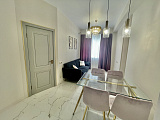 Внутри квартиры выполнен дорогостоящий ремонт, установлена вся мебель и даже бытовая техника, поэтому новоселье можно будет отпраздновать сразу же после покупки. Изысканный интерьер – это отдельный плюс, который делает проживание тут по-настоящему приятным. В основе оформления – элегантная современная классика. Стоит обязательно побывать тут лично и увидеть это великолепие своими глазами.
