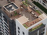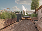 - Эксплуатируемая крыша с зонами отдыха и зелёными террасами;