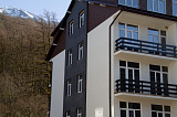 В состав АК «Поляна Парк» входят трехэтажные дома клубного типа, которые объединены общей территорией и единой архитектурной концепцией. Стиль шале как нельзя лучше вписывается в естественный ландшафт и очень выигрышно смотрится на фоне горного массива. Продуманный до мелочей ландшафтный дизайн придомовой территории - прекрасное дополнение.