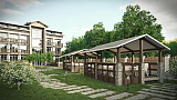 Большое внимание здесь уделено созданию комфортабельных зон для отдыха владельцев апартаментов. На закрытой и охраняемой территории располагается открытый бассейн с видом на горную панораму, SPA-комплекс, зона барбекю. Наличие парковочного пространства для автомобилей – это отдельный плюс.