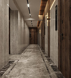 В отделке помещений общего предназначения использованы дорогостоящие материалы, которые только подчеркивают престижный статус самого комплекса. Фасады облицованы натуральным травертином и сибирской лиственницей. Проведены современные линии коммуникационных и инженерных систем.