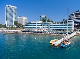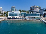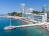 - расположен на берегу Черного моря в 10 метрах от собственного пляжа