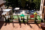 ЖК «Раздолье-3» находится на большом участке земли. На карте города Сочи он занимает 35 соток, 10 из которых выделено под благоустройство придомовой территории. Есть функциональная детская площадка, что является существенным плюсом для семей с детьми. Жилой комплекс огражден по периметру, имеется действующее освещение с применением датчиков с фотоэлементами, а также ведется видеонаблюдение, что обеспечивает дополнительный комфорт и безопасность жильцов ЖК.