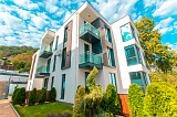 Отдельного внимания заслуживает факт выгодной локации. Комплекс находится около реки Псахе, а от берега Черного моря его отделяет всего 10 минут ходьбы неторопливым шагом. Речная набережная, ведущая к пляжной полосе, благоустроена и озеленена, поэтому прогулка превратится в настоящее удовольствие! Рядом есть все: от продуктовых супермаркетов до школ, детских садов и медицинских центров.