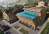 Архитектурный ансамбль из шести изысканных шале гармонично вписан в горный ландшафт. С террас и балконов открываются захватывающие дух панорамы на величественные Кавказские хребты, даря гостям чувство полного уединения с природой и истинного благоговения.