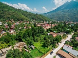 Участок правильной формы расположен возле горного ручья. Получено разрешение на строительство. Коммуникации - центральные. Газ можно подвести к участку (тридцать метров до линии).