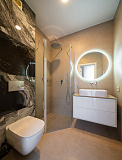 Предлагается к продаже новый дом в стиле хайтек с отделкой под ключ – мебель, в том числе уличная, вся техника, шторы. Дом состоит из 4 этажей считая паркинг. Отличная планировка: Кухня-гостиная - 38кв.м. 5 спален, 5 санузлов, 2 террасы 28 и 20 кв.м.