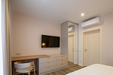 Микрорайон развит – супермаркет, детсад, транспортная развязка. До морского пляжа санатория "Южный" 15 минут пешком. Расстояния на машине: до аэропорта 20 минут, до Олимпийского Парка 25 минут, до Красной Поляны 40 минут. Вся инфраструктура: супермаркет, аптека, остановка общественного транспорта в пешей доступности - не более 5 минут.
