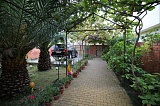 Расположен дом на большом земельном участке, площадь которого составляет 7 соток. Двор благоустроен. Есть виноградная беседка, высажены пальмы, лианы киви и т.д. Также во дворе есть место для стоянки автомобиля. Центральные коммуникации, собственность, полный пакет документов.