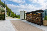 - Удобный подъезд к автостоянке интегрирован в естественный рельеф участка, не нарушая архитектурного облика фасада, что придает особняку еще больше очарования.