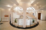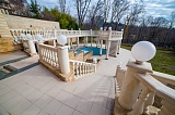 Архитектурное решение действительно делает особняк похожим на Колизей – амфитеатр, памятник архитектурны в древнем Риме. Украшением округлого фасада выступают античные колонны. Также в оформлении экстерьера присутствует натуральный камень, мрамор и т.д. Дополняет стильную архитектуру ландшафтный дизайн прилегающей к этому особняку территории. Благоустроены уютные для отдыха и релакса, очень много зелени, разбиты цветники и клумбы. На участке находится бассейн и зоны для солнечных ванн. Чтобы насладиться всеми благами летнего отдыха, Вам теперь не придется покидать территорию своего дома!