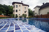 Общая площадь дома составляет 400 кв и 11 соток земли. На первом этаже расположен закрытый гараж и две комнаты с изолированными санузлами и кухнями для размещения гостей либо обслуживающего персонала, на втором этаже расположен каминный зал с кухней, спальней и просторным санузлом, на третьем этаже хозяйская спальня,рабочий кабинет и санузел,четвертый этаж отведен под зону отдыха с бильярдом и детским уголком. На территории домовладения расположен бассейн и пруд который оснащен всем необходимым для разведения рыбы,а также имеется гостевой домик и баня с выходом на речку с оборудованной террасой действующая теплица, вокруг дома плодоносные фруктовые деревья, виноградник, ландшафтное озеленение и зона барбекю. По всему периметру дома видеонаблюдение.