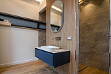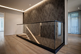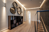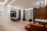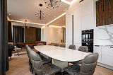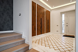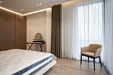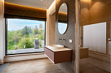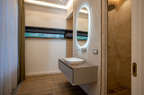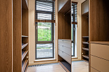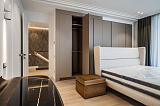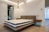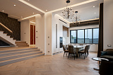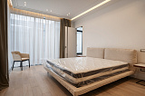 Площадь дома составляет 380 м2. Внутреннее пространство поделено на 5 спальных комнат и просторную кухонно-гостиную зону. В каждой спальне – собственный санузел и гардеробная зона. Грамотное зонирование пространства – это залог комфорта для всех домочадцев. Интерьер не перегружен лишним декором и громоздкой мебелью, поэтому внутри царит атмосфера легкости и уюта. Отметим также, что в отделке использованы материалы премиум-класса. Этот аспект только подчеркивает престиж данного предложения!