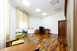 Интерьер оформлен в современном классическом стиле. Мебель подобрана в соответствии с общей тематикой.