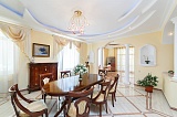 Внутри особняка выполнен дорогой ремонт, который не требует никаких дополнительных вложений. Комнаты полностью укомплектованы мебелью, бытовой техникой и климатическим оборудованием, позволяющим спастись даже от самой сильной летней жары.