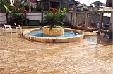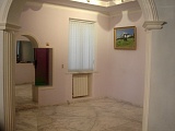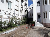 Двор выложен иранским травертином, центр украшен экзотическими растениями. На территории двора есть глубокий плавательный бассейн, помещение под сауну.