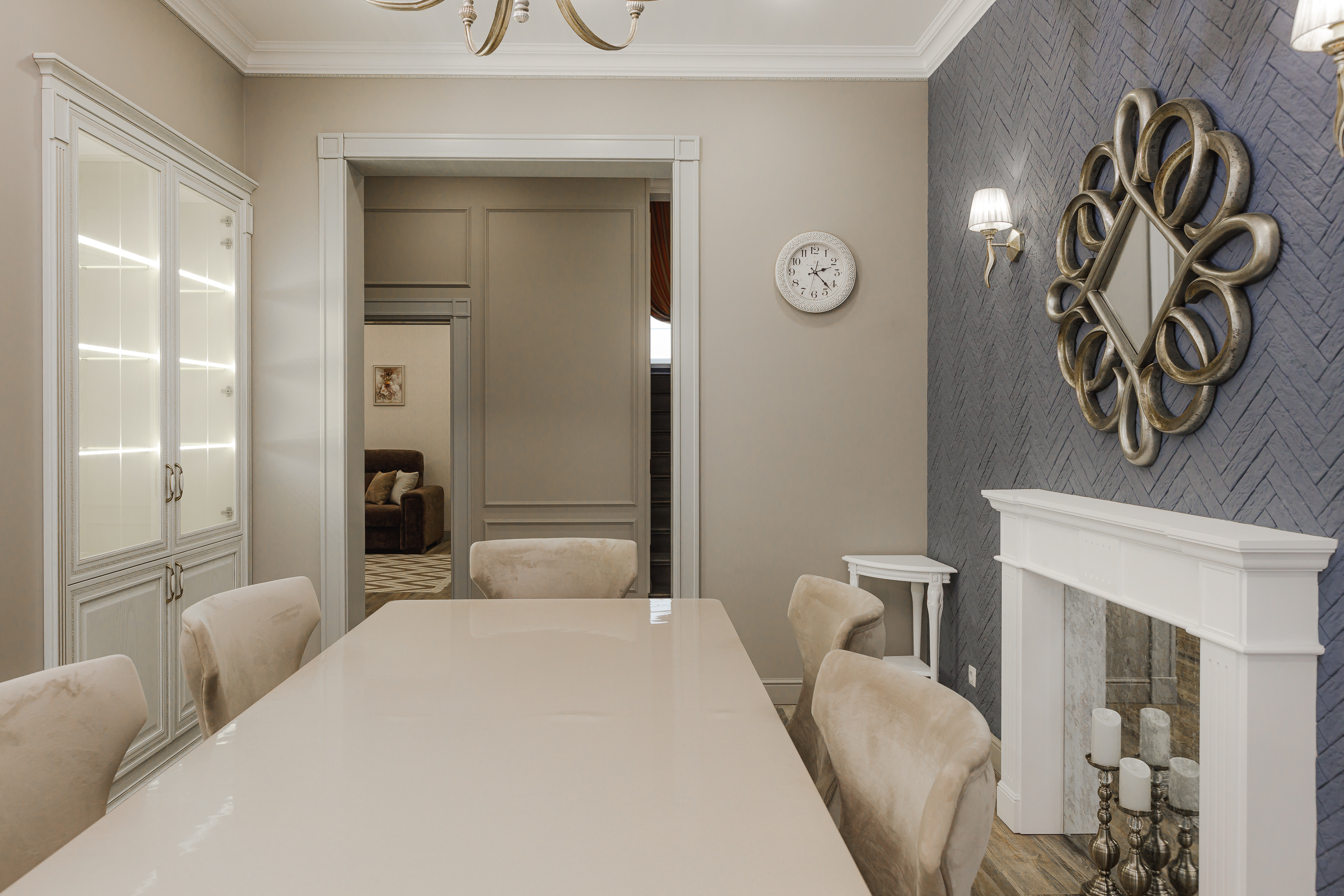 Интерьер выполнен в классическом стиле с индивидуальным дизайнерским ремонтом, сделана грамотная разводка всех коммуникаций и проводки продуманная до мелочей. Отдельно хочется обратить внимание на художественную лестницу, располагающуюся внутри дома. Интерьер совмещает в себе нотки средиземноморской тематики и минимализма. Опытные дизайнеры продумали все мелочи: начиная от общего замысла внутреннего стиля до организации вспомогательных зон!