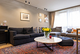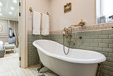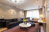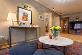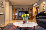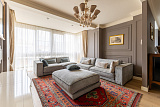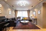 Проживающим в апартаментах на первом этаже представится возможность принимать гостей в презентабельной гостиной, имеющей выход к бассейну с гейзерами и водопадом. Возле апартаментов можно организовать барбекю, отдохнуть в гамаке под тенью субтропических растений.