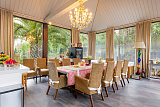 - на первом этаже расположены 4 Спальни, Кухня, Гостиная, которые переходят в отдельно построенную с панорамным остеклением, Летнюю кухню-столовую с выходом в Бассейн и двор-патио;