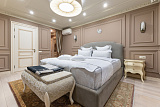 Внутри Виллы сделан дизайнерский ремонт, над которым трудились профессиональные мастера. Вилла отделана дорогостоящими материалами, керамогранит, паркетная доска, полностью меблирована дорогой Итальянской мебелью. Все комнаты и помещения полностью укомплектованы мебелью, необходимой бытовой техникой.
