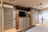 - на втором этаже расположились апартаменты для двух хозяев, в одних из которых имеется два уровня, кинозал, оборудованные места для отдыха детей и взрослых;