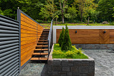 Дополнительные зоны для отдыха находятся на эксплуатируемой кровле и прилегающем к дому участке. Самый важный плюс – наличие собственного бассейна, благодаря чему вы сможете наслаждаться водными процедурами, независимо от времени года. Также во дворе обустроена зона для барбекю. Предусмотрено индивидуальное парковочное пространство для автомобилей.
